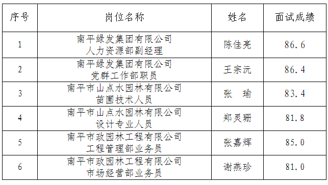 南平綠發集團有限公司對外招聘擬錄用人員名單公示